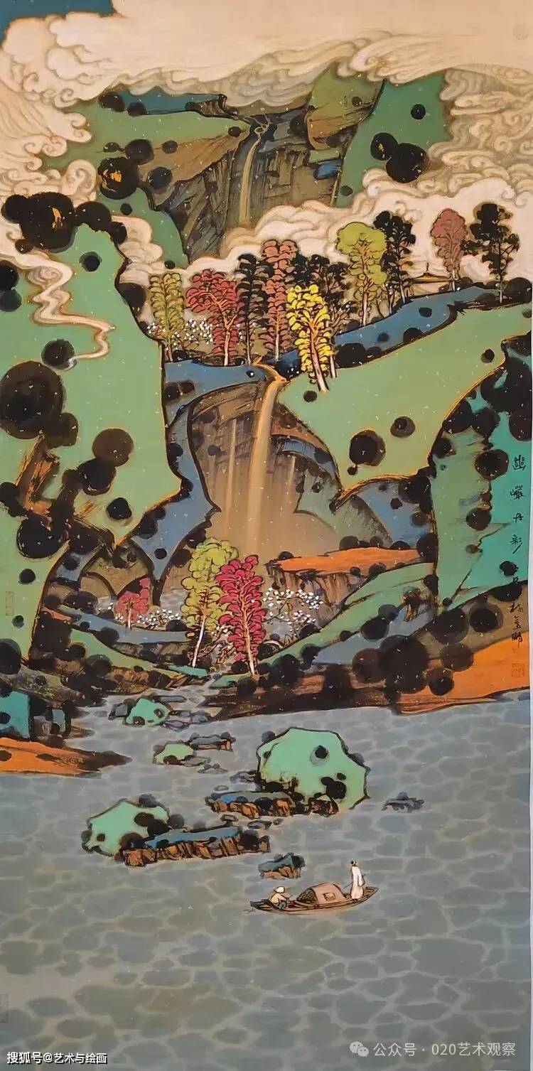 林金明先生的青绿山水驰誉粤港澳,算是有所成就的中国画画家。近日观其新作,又惊又喜,感觉到他的变法很成功。不由得想到一个词,鱼龙变化。大家都知道鲤鱼跳龙门,说鲤鱼跳过龙门就变成了龙。真正的艺术家就要做跳龙门的鲤鱼,实现鱼龙变化。凡艺术大家都是经历变法过程的,如张大千大师,年轻时画石涛就可乱真,传统功力了得,但他不囿旧习,创意泼彩山水,独立世界画坛。可谓鱼龙变化的典型。