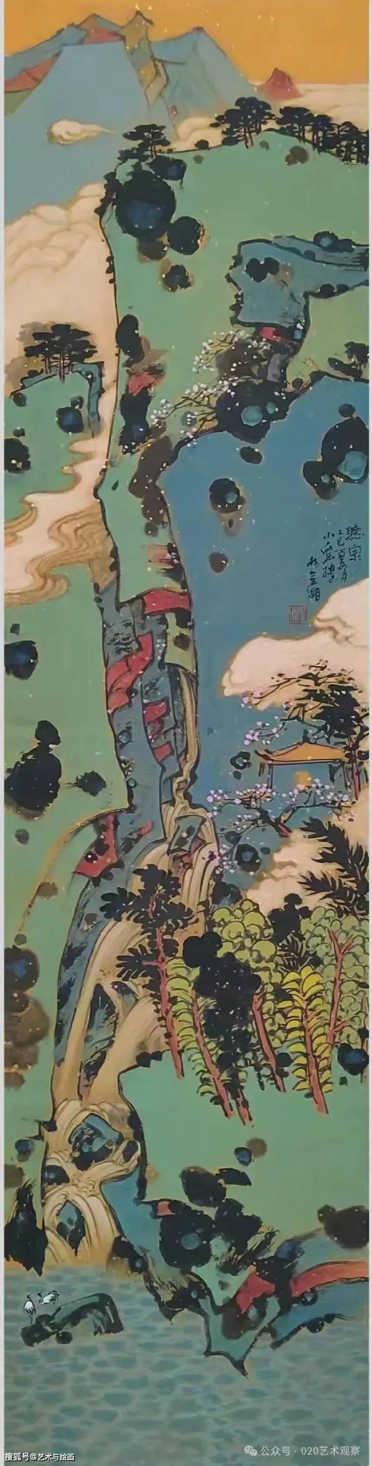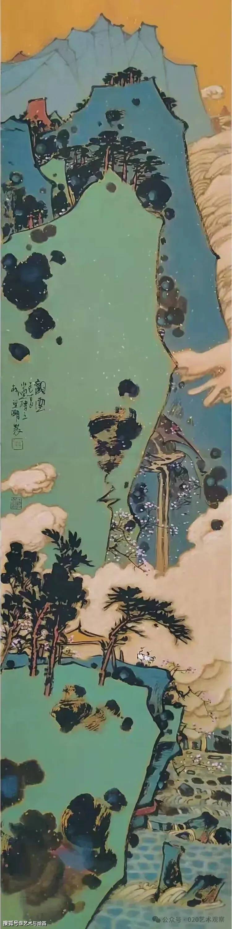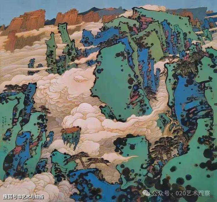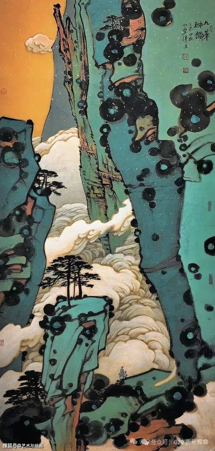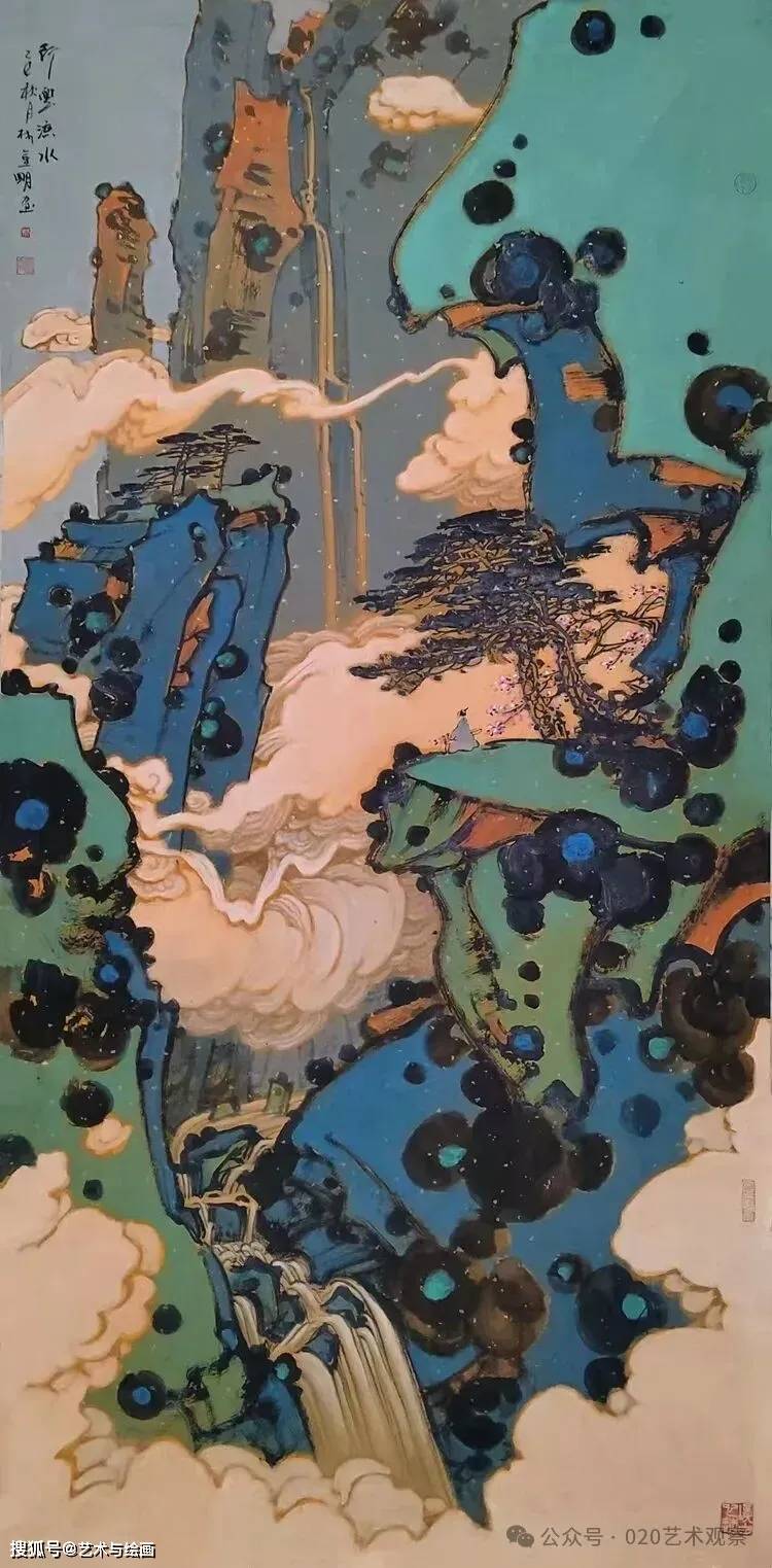 绘画是独特的视觉语言,于传统中国山水艺术中,线条勾勒为筋骨精神,墨色变化乃血肉灵魂。历代先贤秉持“天人合一”之念,于烟峦云岫间静观体悟,创作出数十种贴合中华大地肌理的皴法。吾作此系列探索时,心怀对传统文脉的敬畏与对自然丘壑的热爱,尝以传统与现代柔合,延大青绿古法之典雅,融“以书入画”之笔勾勒线条、画面经营,刻意强化点、线、面、色构成的节奏感——借点之大小聚散、浓淡枯湿,线之粗细徐疾、提按转折,面之开合重叠、虚实相生,色之青绿红黄、冷暖碰撞,在飘渺流动的云山水韵间,追求一种洒脱的禅意生活与构筑抒发属于自身的精神家园。