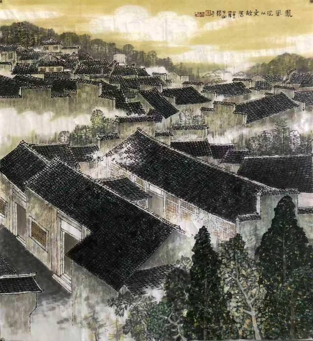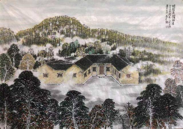 “湖湘名人故地(故居)”系列中,张奇在保留鲜明个人特色的同时,以湖湘民居为点睛之笔,诠释历史文化符号。画中故居,不作孤立描摹,既与山水景致相得益彰,又是地域文化的活态载体:屈子祠肃穆精巧,于江雾中若隐若现;杜甫江阁重檐斗拱,回荡着心忧天下之绝唱;韶山农舍藏着伟人初心,富厚堂青砖承载着曾氏家风,与湘楚山水的苍劲灵秀天然相融,交相辉映。