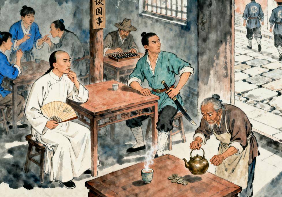 茶馆老板环顾四周,压低声音:“这话可不能乱说......”
