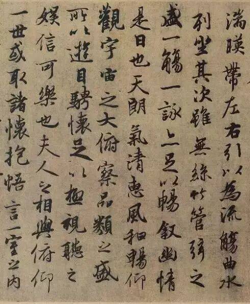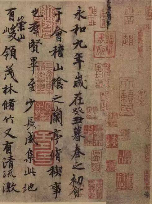 永和九年,岁在癸丑,暮春之初,会于会稽山阴之兰亭,修禊事也。群贤毕至,少长咸集。此地有崇山峻岭,茂林修竹;又有清流激湍,映带左右,引以为流觞曲水,列坐其次。虽无丝竹管弦之盛,一觞一咏,亦足以畅叙幽情。是日也,天朗气清,惠风和畅,仰观宇宙之大,俯察品类之盛,所以游目骋怀,足以极视听之娱,信可乐也。《兰亭序》之“三绝”