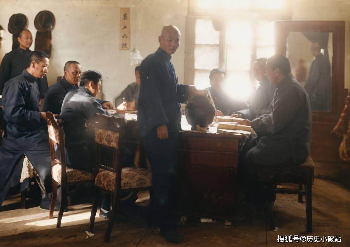 室内光线柔和,墙上挂着中式对联,桌椅朴素却整洁,透着故宫人在战乱中依然严谨专业的工作态度。每一件瓷器都被小心翼翼对待,因为它们是明清官窑的巅峰之作,也是中华文明的易碎瑰宝。