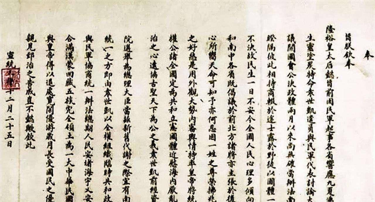 溥仪即位时,清朝已经衰败不堪。他的统治并不长久,1911年,爆发了震惊全国的武昌起义,国内局势日趋混乱。袁世凯借机掌握了政权,之后加大了进攻力度,炮击武昌,导致了南北战争爆发。随之而来的是华北地区许多省份脱离了清朝管辖,虽然北方一些省份依旧效忠清廷,但局势已经岌岌可危。为了国家统一,孙中山与袁世凯进行接触,最终迫使溥仪宣布退位。