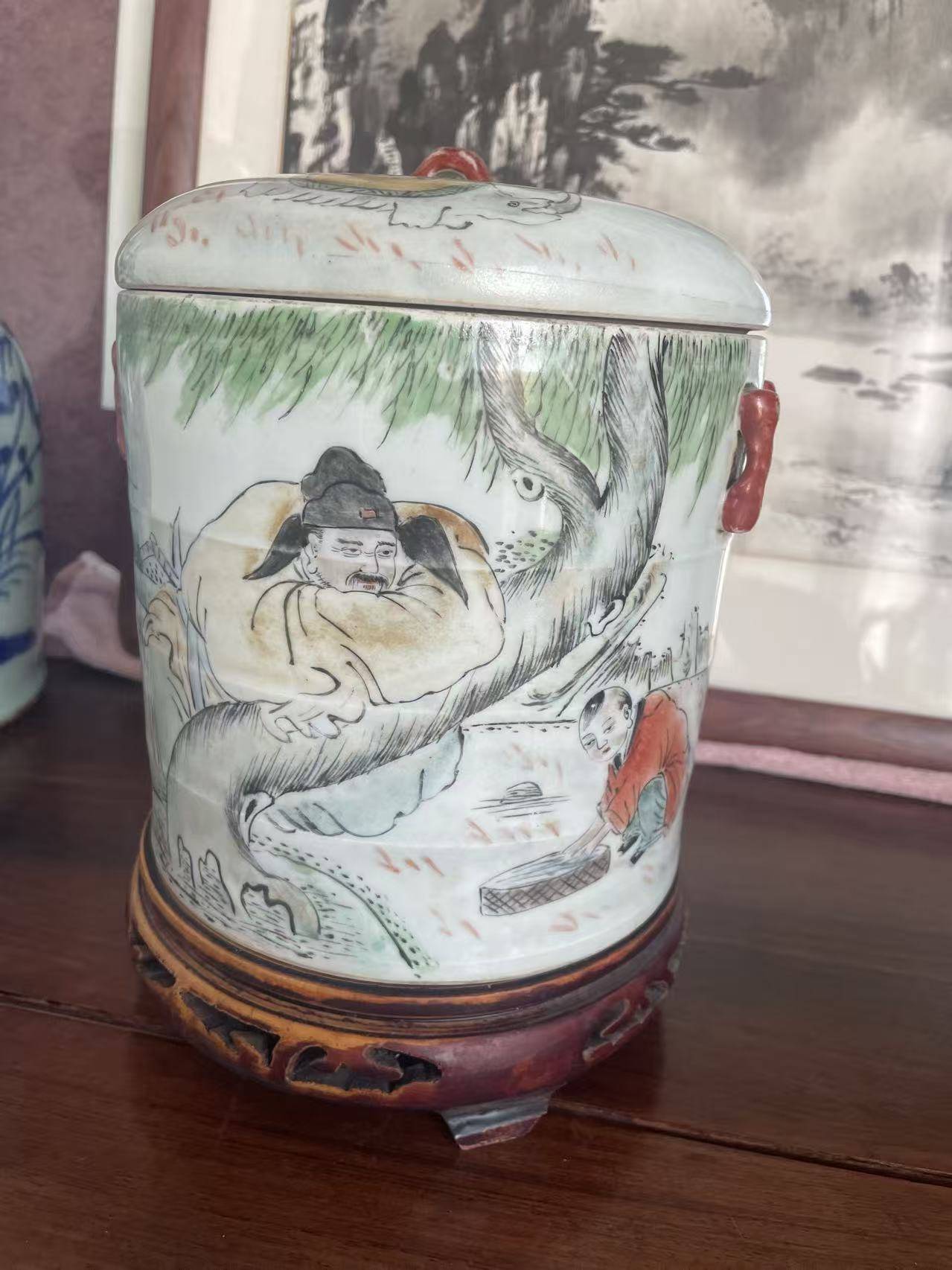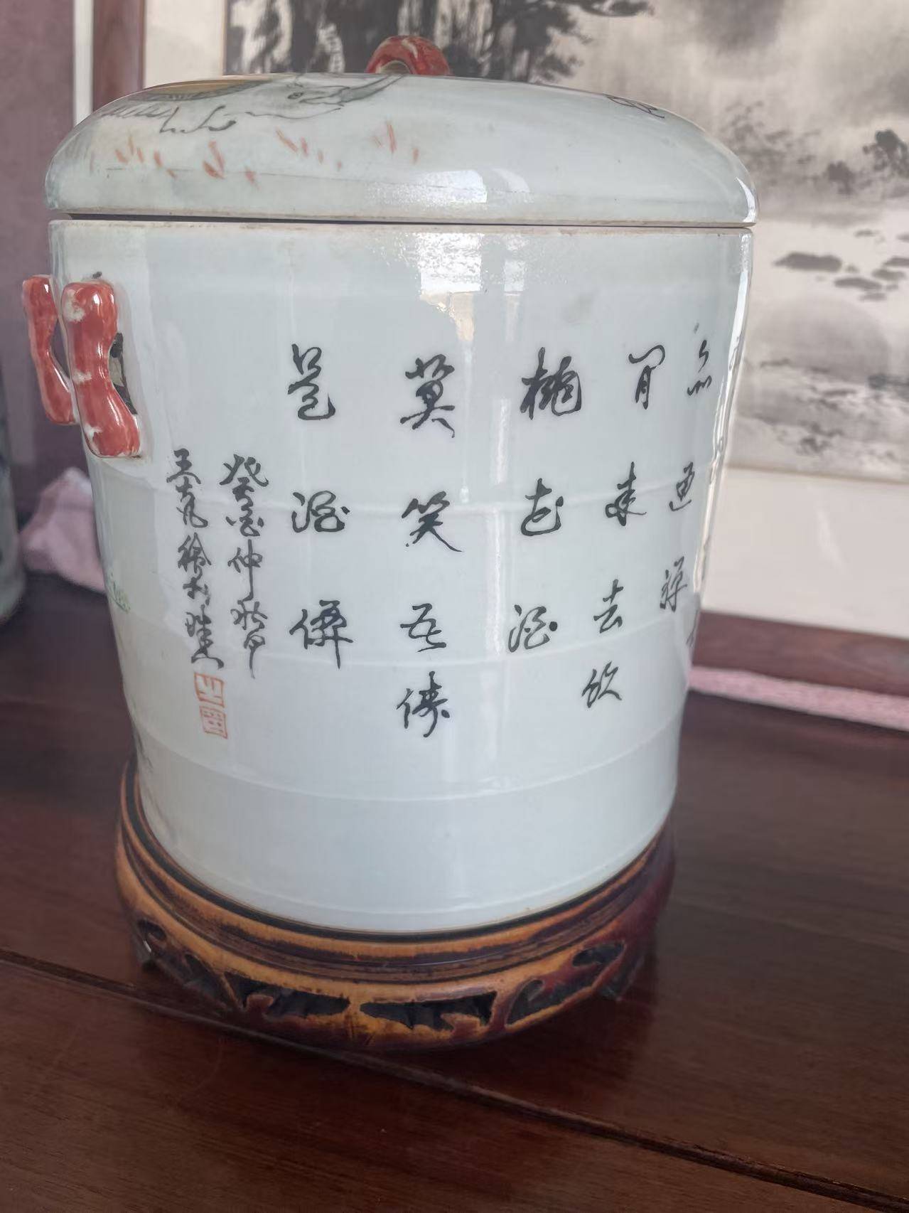 如今,近百年时光流转,这只盖罐依然保存完好,釉面温润,色彩依旧,仿佛在静静诉说着民国瓷绘艺术的风华。它不仅是一件实用的盖罐,更是一件浓缩了王大凡艺术成就、民国文人审美与陶瓷工艺的珍品,是我们了解民国瓷绘艺术、感受文人瓷画魅力的重要窗口。