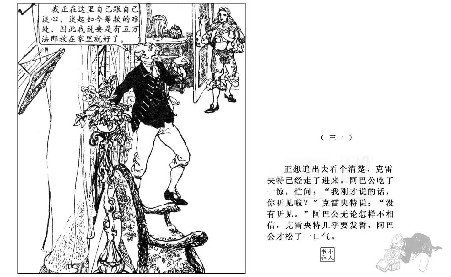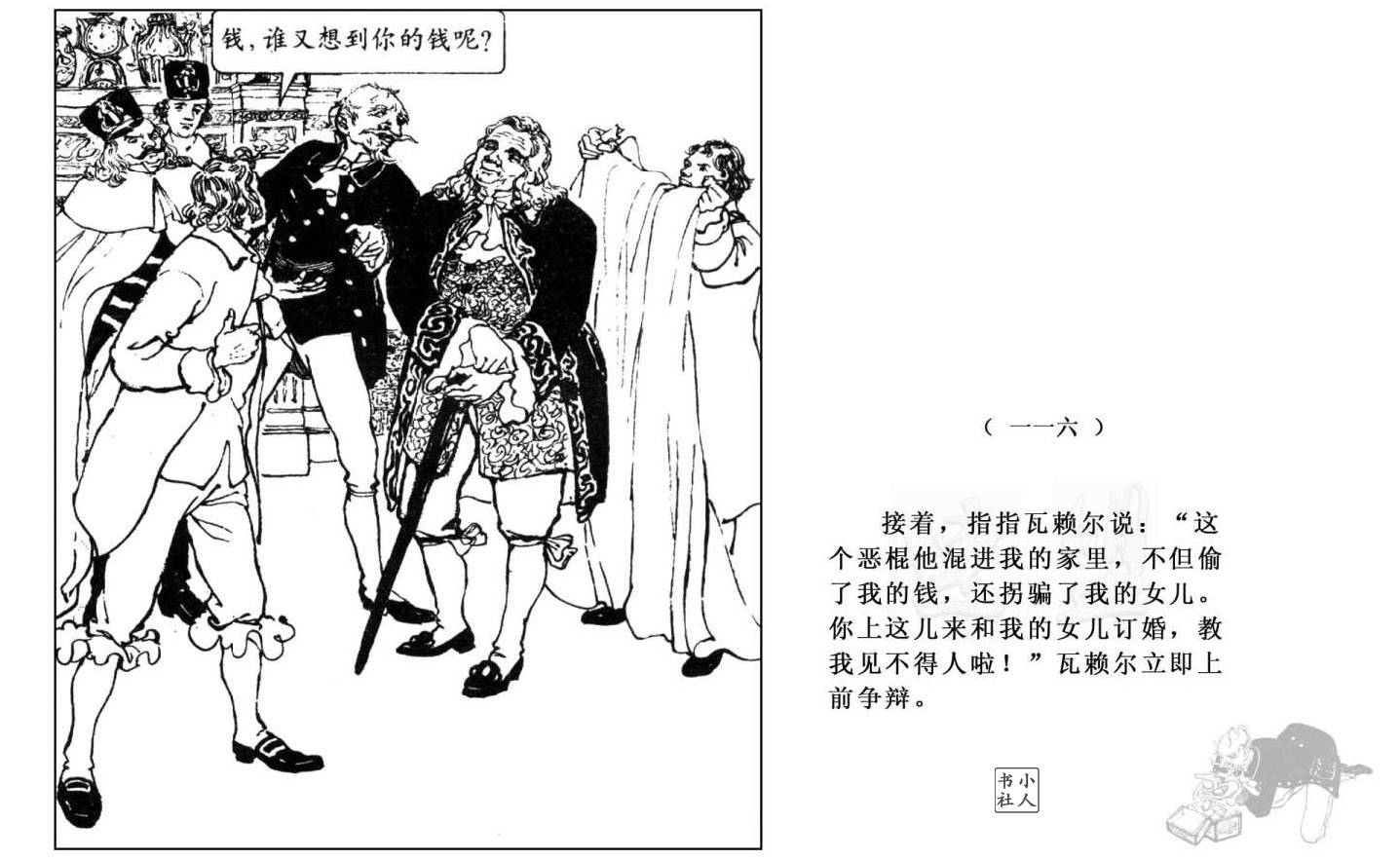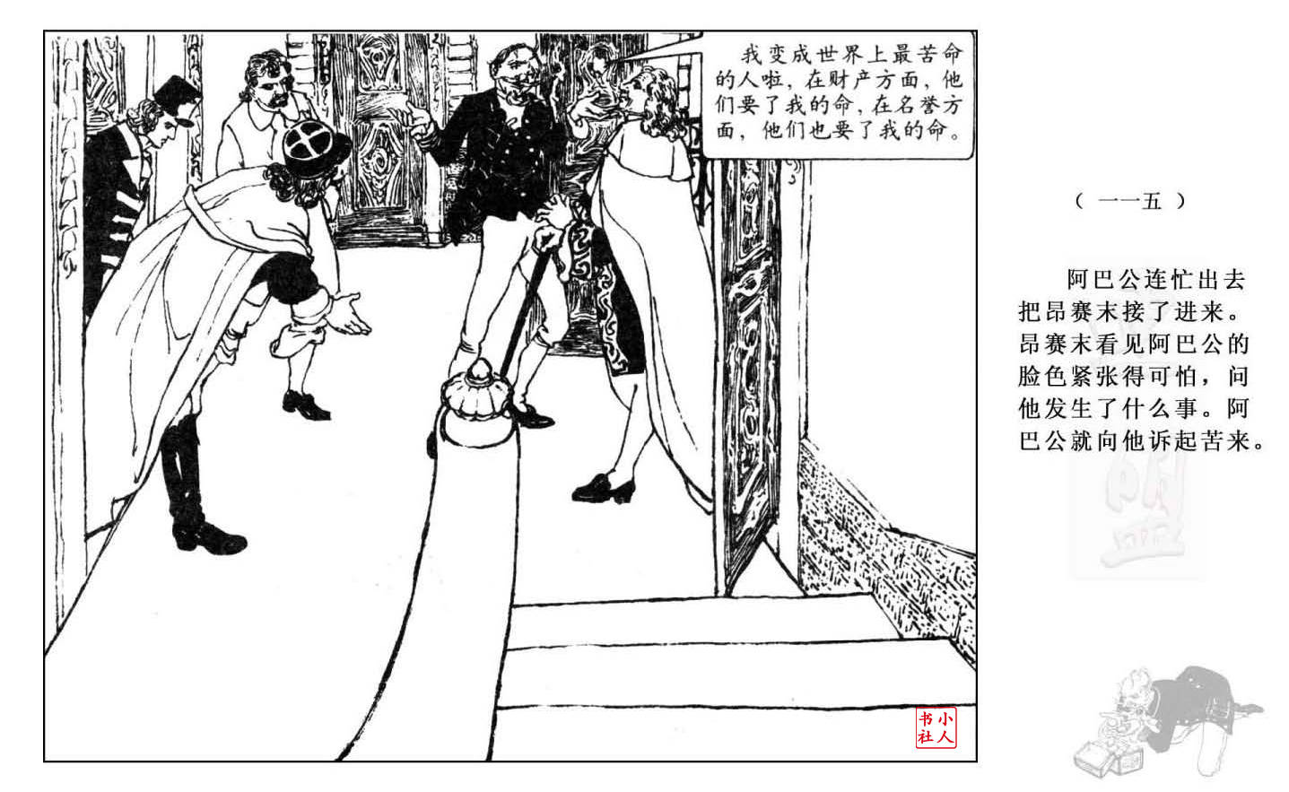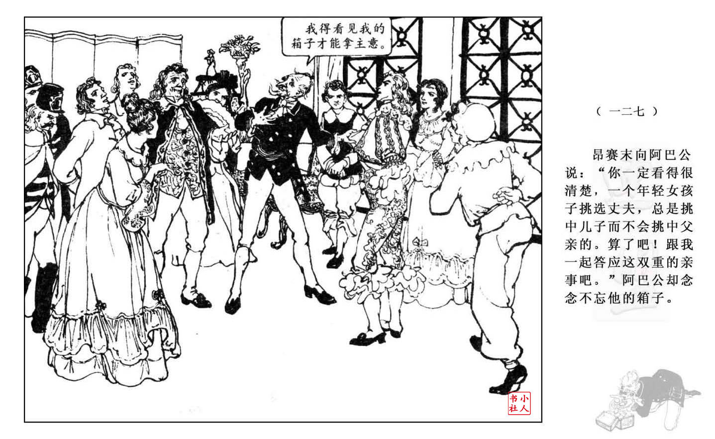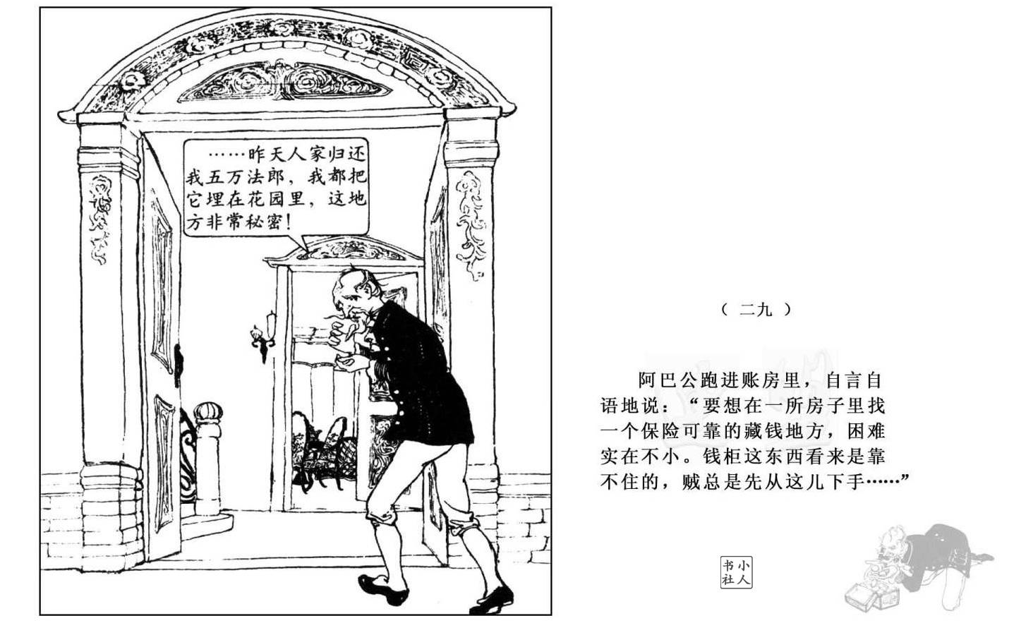《吝啬鬼》连环画是根据十七世纪法国作家莫里哀的同名作品,由李白英改编,胡克文绘画。作者通过这个故事,生动地刻画出一个爱财如命、不惜以儿女的婚嫁作为致富手段的守财奴肖像,并用喜剧的形式来进行讽刺和嘲笑,尖锐地鞭挞和揭露了当时法国社会的丑恶现象。