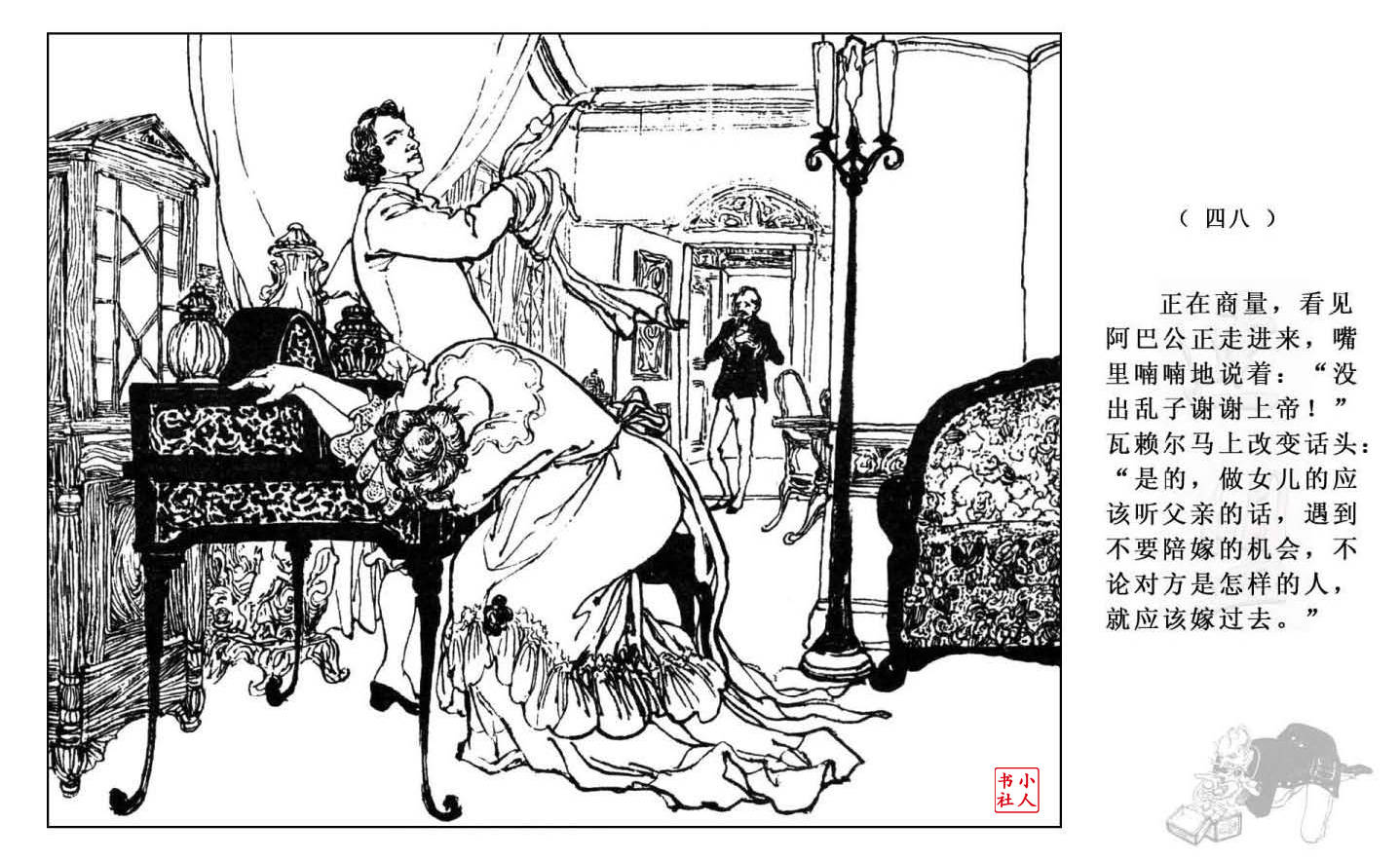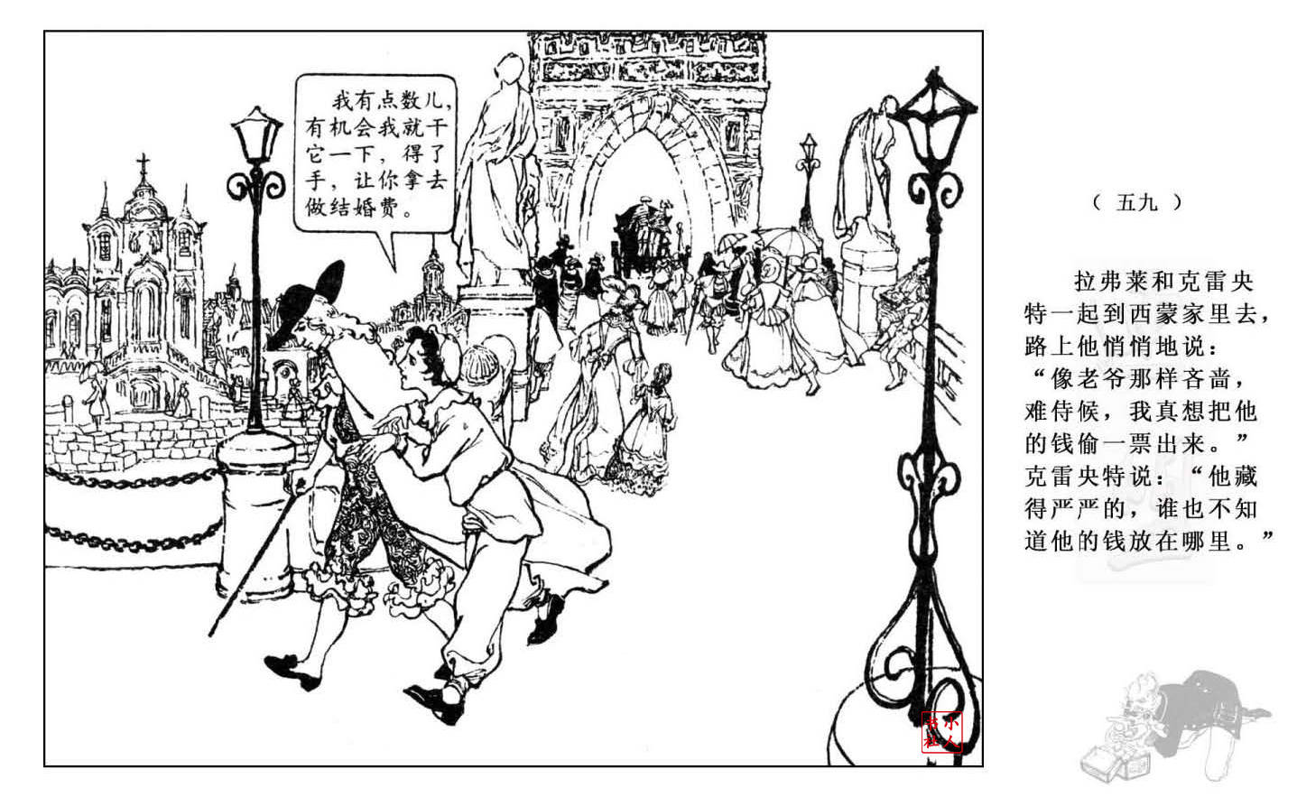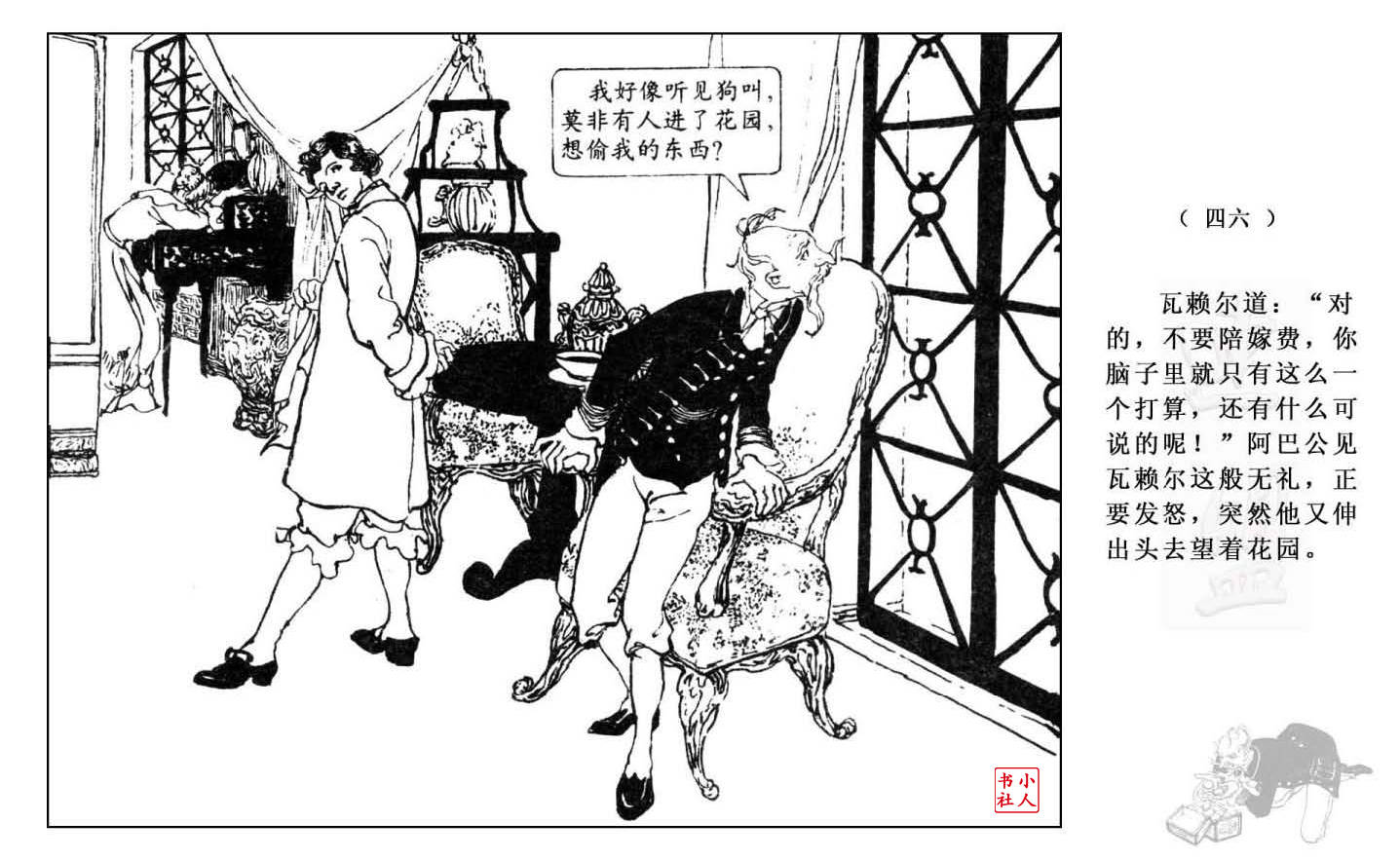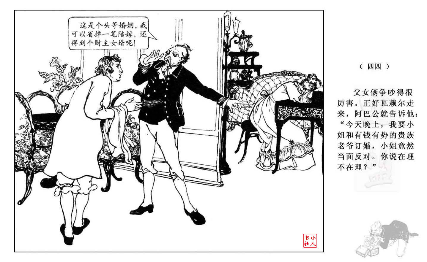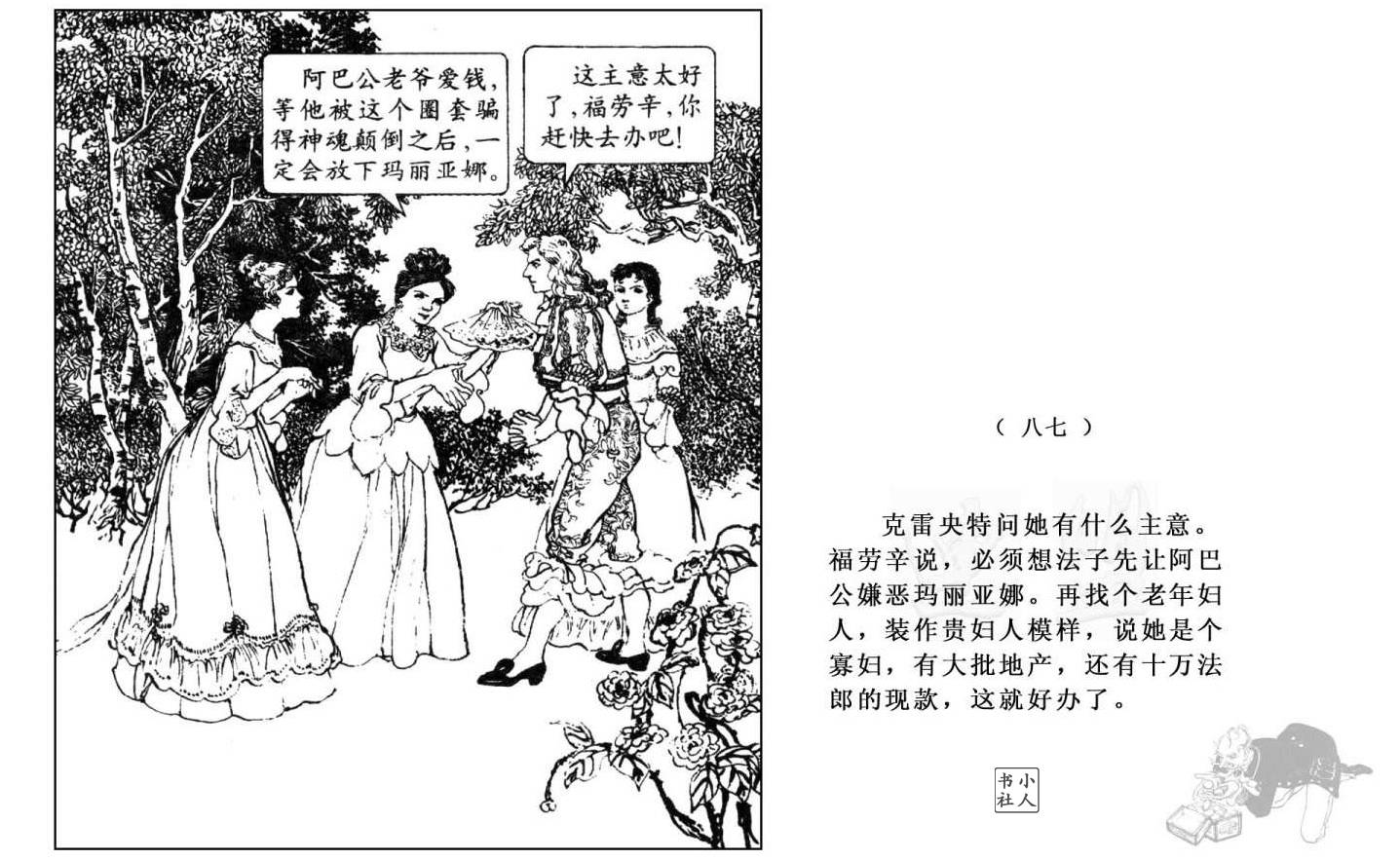 《吝啬鬼》连环画是根据十七世纪法国作家莫里哀的同名作品,由李白英改编,胡克文绘画。作者通过这个故事,生动地刻画出一个爱财如命、不惜以儿女的婚嫁作为致富手段的守财奴肖像,并用喜剧的形式来进行讽刺和嘲笑,尖锐地鞭挞和揭露了当时法国社会的丑恶现象。
