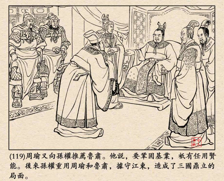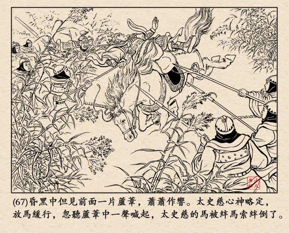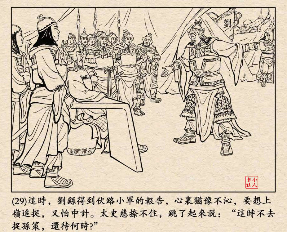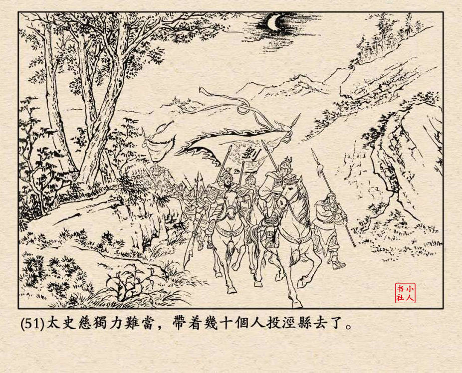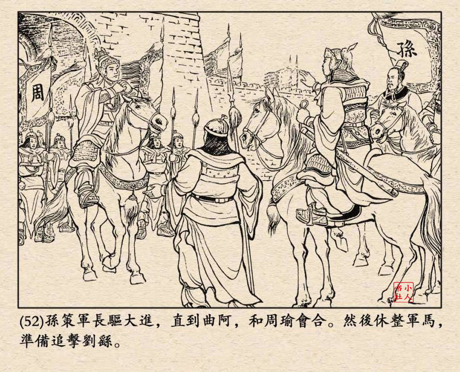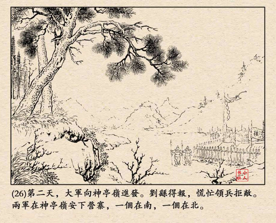 此后,他又与老画家蒋萍合作绘制《取南郡》分册,继续承担景物背景绘制任务,其画风细腻、构图严谨,与人物描绘相得益彰,展现出极高的艺术水准 。