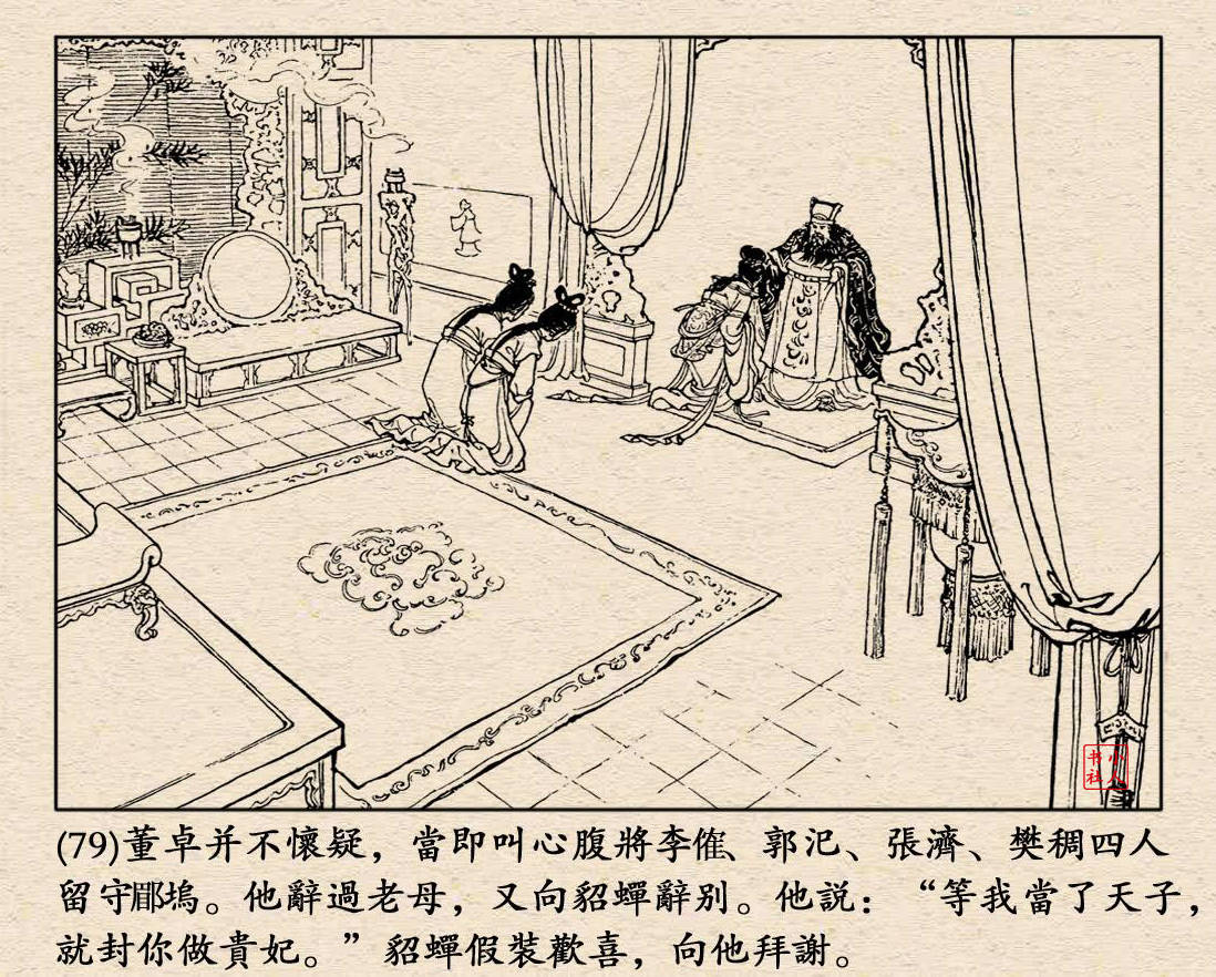 《凤仪亭》连环画是由胡雁改编,徐正平、徐正方绘画。故事讲述董卓协迫汉献帝建都长安后,倚吕布为心腹,凶横暴虐,在臣都敢怒而不敢言。司徒王允运用“连环计”,离间董卓、吕布关系,使吕布除掉董卓的故事。