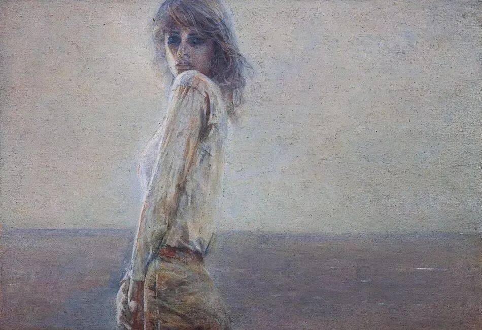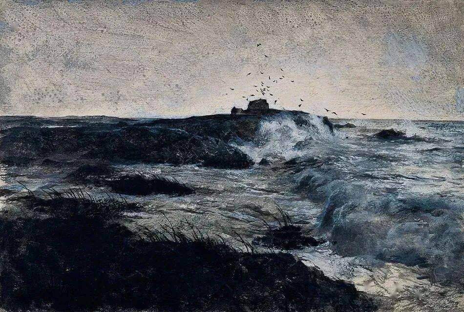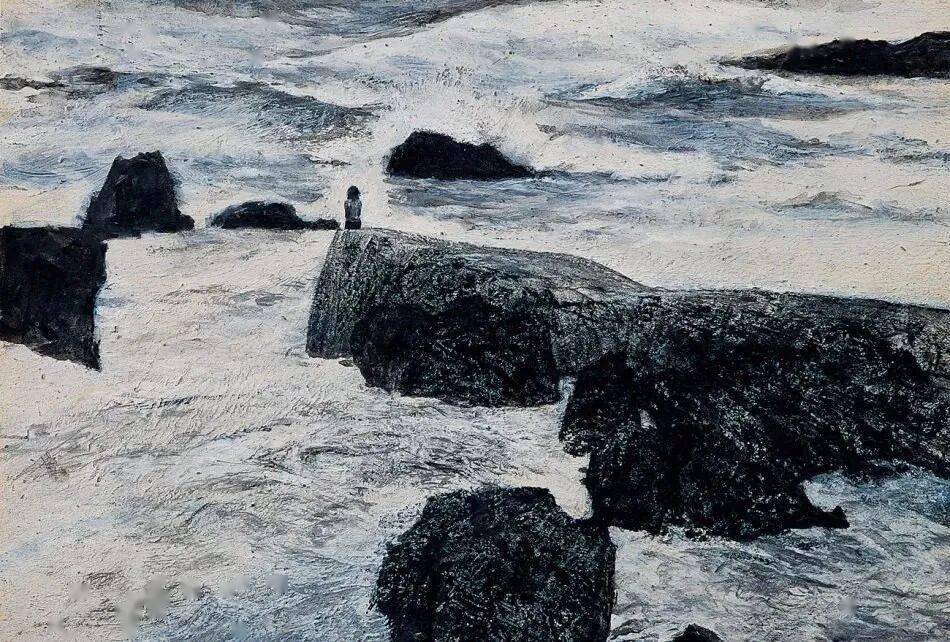 像是蒙着一层海雾,让固态的画布产生了流动的湿气感,观者仿佛能闻到海水的咸腥味。