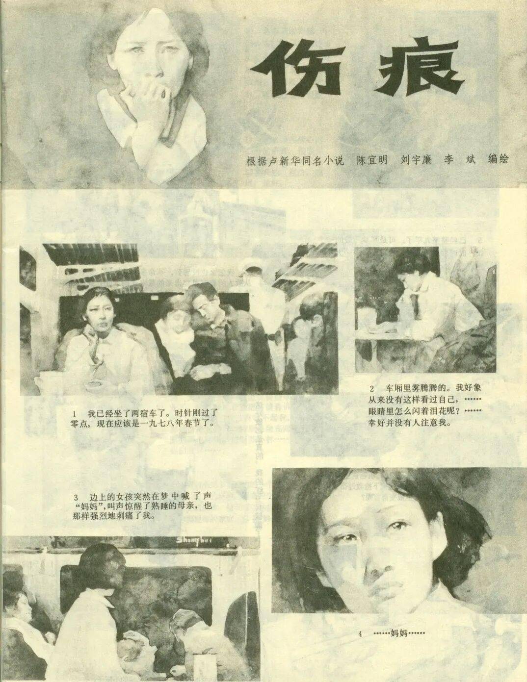其中,打响第一枪的,便是陈宜明、刘宇廉、李斌三位画家根据卢新华小说创作的同名连环画《伤痕》。