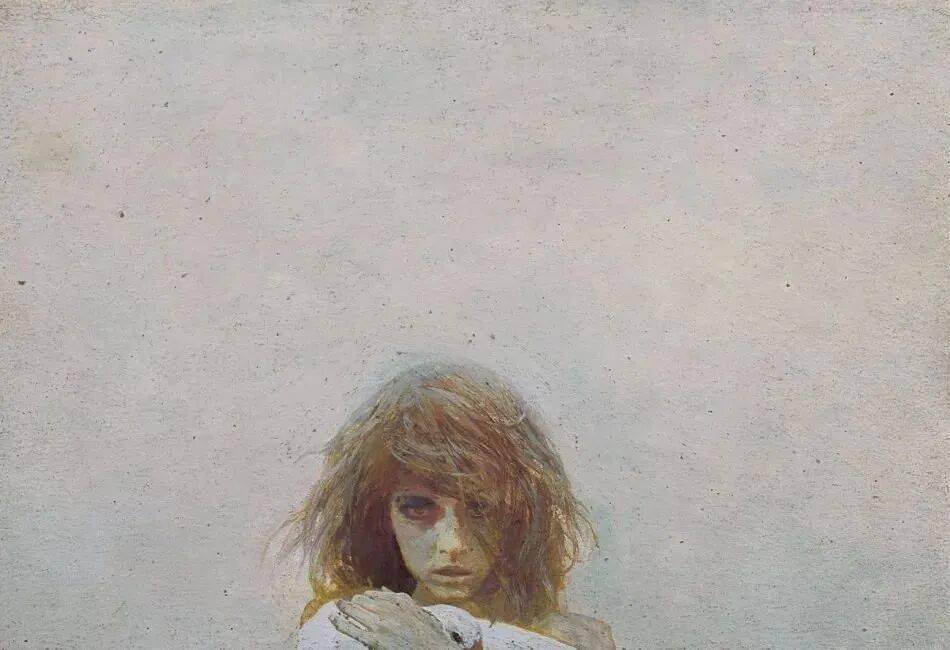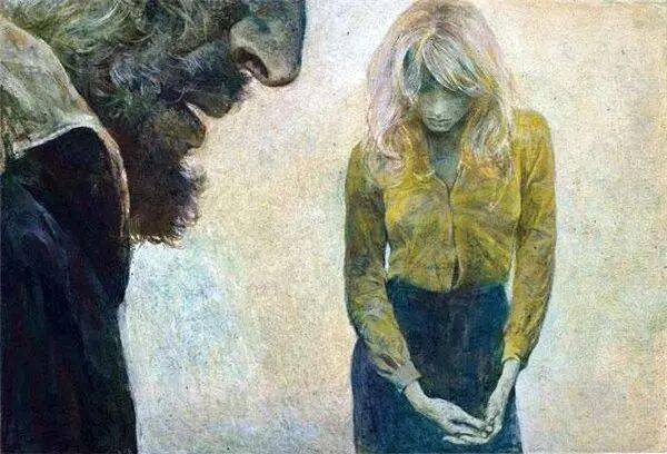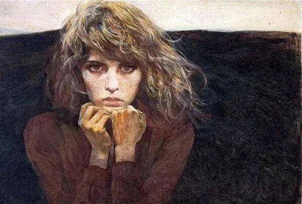 何多苓大量使用含灰的蓝色、赭石色。使得人物永远围绕在寒冷且寂静的氛围中。