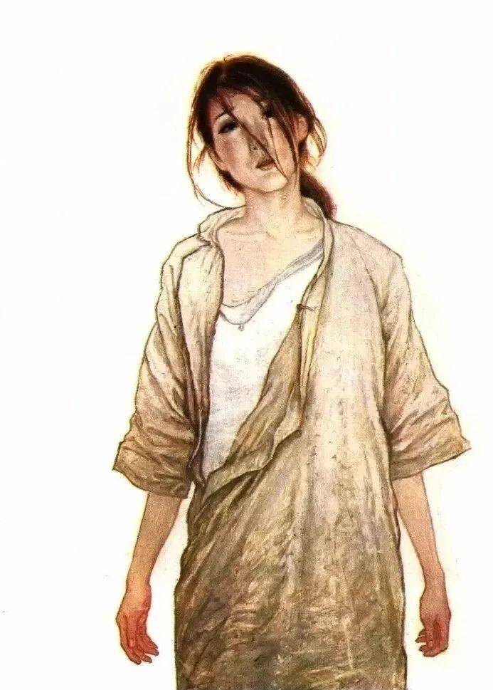 人体比例也并非写实,女孩关节突出,带有一种病态的、神经质的纤细。
