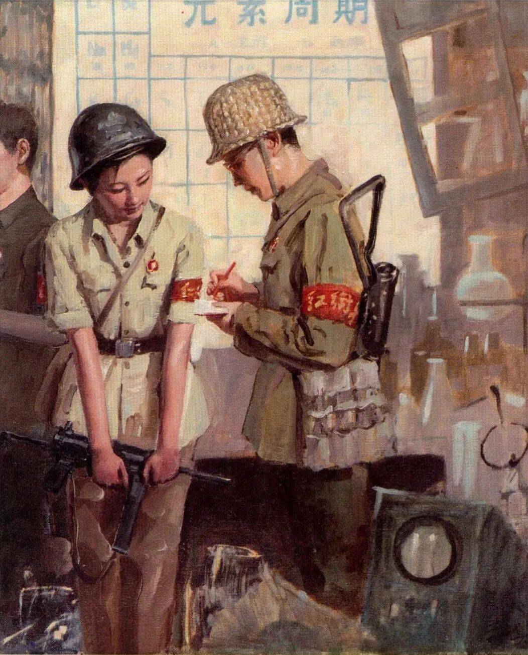 在印刷技术相对落后的年代,画家们一改常规的线描手法,大胆选择了水粉材料。利用水粉干燥后的“粉气”与“亚光质感”,营造出一种蒙尘的、干涩的历史旧照感。