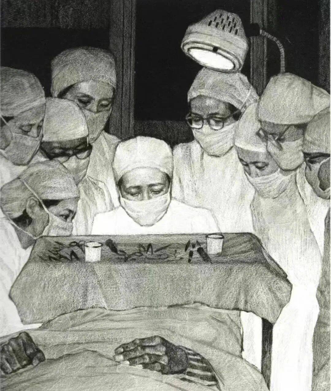 手术灯的直射光形成“高光区”,聚集所有视线,暗部则压得很死,强烈的明暗反差传递出手术的紧张与严肃。