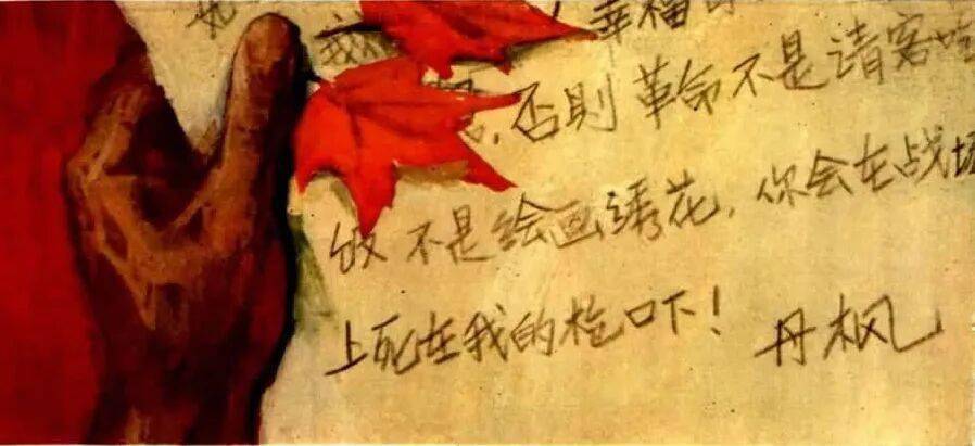 枫本应是热烈的红,但在陈宜明等人的笔下,红不再是鲜亮的、而是被硝烟熏黑的、褶皱的、甚至沾染泥污的。