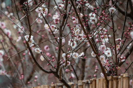 1. 单瓣(江梅)品种群:这是最古老、最接近野生原始状态的花梅品种。花呈单瓣,多为5-7瓣,花色以白色为主,亦有粉、红色,清香扑鼻。它们仿佛梅花未经雕琢的本真模样,简约而风骨自成。
