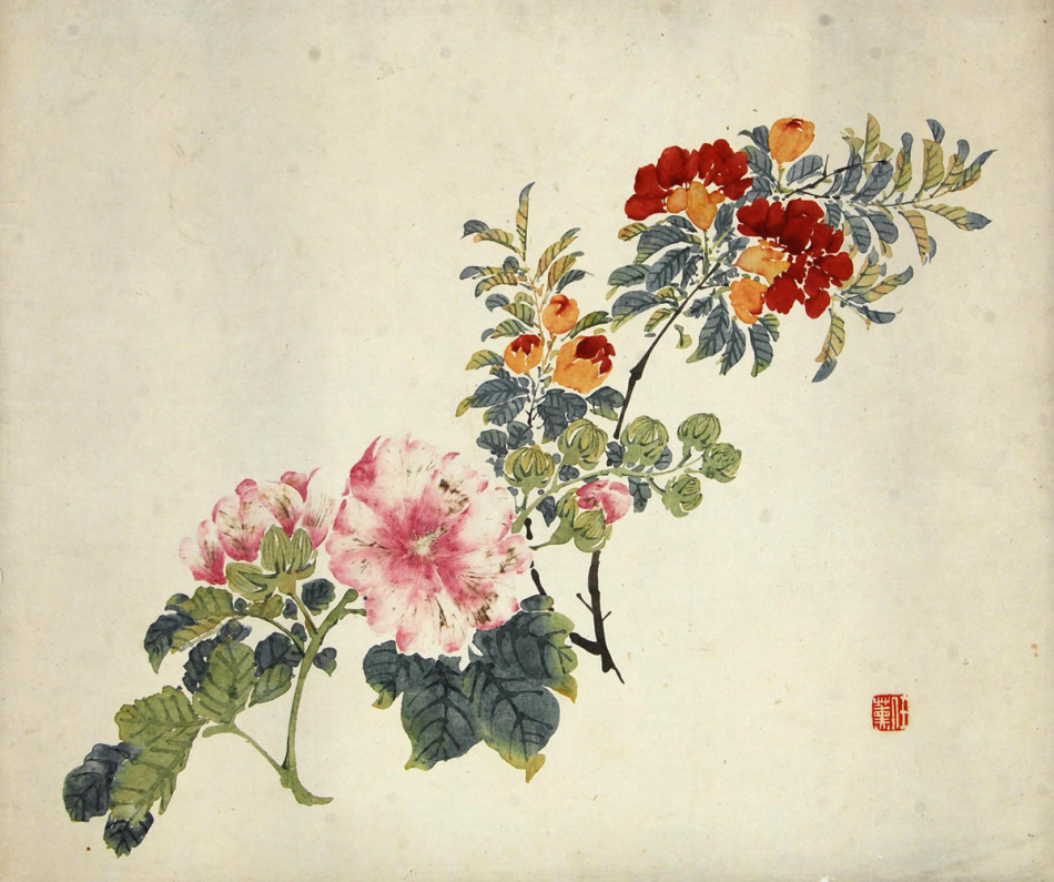 陈佩秋 谢伯子-山水·兰花-纸本成扇