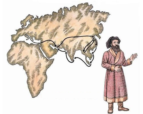 另一种说法认为比萨来源于中国:当年意大利著名旅行家马可·波罗在中国旅行时最喜欢吃一种北方流行的葱油馅饼。回到意大利后他一直想能够再次品尝,但却不会烤制。一个星期天,他与朋友在家中聚会,马可·波罗把其中一位来自那不勒斯的厨师叫到身边,描绘起中国北方的香葱馅饼来。那位厨师按马可·波罗所描绘的方法制作。但忙了半天,仍无法将馅料放入面团中。马可·波罗提议将馅料放在饼上吃。该厨师回到那不勒斯后按此法配上了当地的乳酪和作料,大受欢迎,从此“比萨”就传开了。