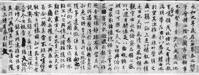 《祭侄文稿》也是创新求变的典范之作,它将篆隶笔法融入行草,浑厚圆劲;同时纯用中锋行笔,一改中侧并用的传统用笔方法;并吸收民间书法的朴茂厚重,与飘逸温雅的“二王”书风拉开距离。面对此稿,不禁为那苍劲的线条、雄浑的气势和天真烂漫的形式所吸引,让人玩之不觉为倦,览之莫识其端。颜真卿改变了“二王”行书一统天下的格局,其《祭侄文稿》是《兰亭序》后的又一座艺术丰碑。