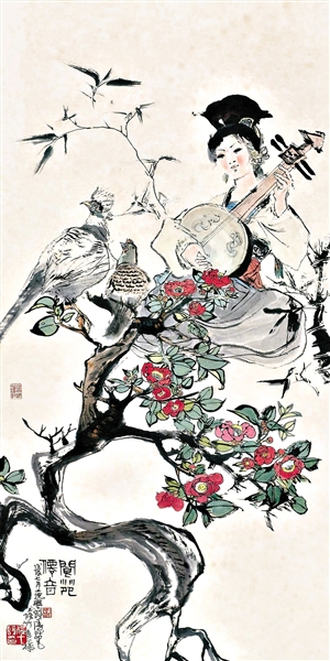 程十发最早主攻山水,之后相继以人物、花鸟闻名。他的人物花鸟画取法于梁楷、贯休、陈洪绶、任伯年诸家,并吸收民间艺术之营养,融会贯通,笔墨洒脱精湛, 气韵生动,抒情而浪漫。他既继承传统,又超越古人。作品既有传统的笔墨,也不乏现代精神,非常具有中国特色,这在当代画家中也是独一无二的。