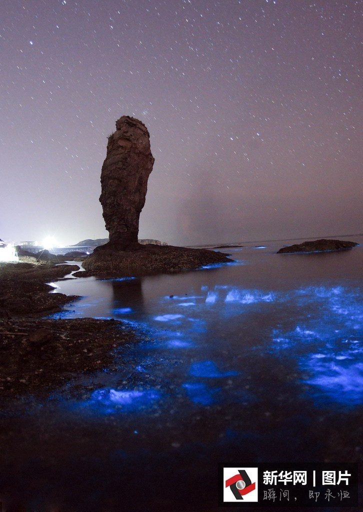 2016年05月11日,辽宁省大连市,大连甘井子区小黑石海域出现“荧光海”景象。进入5月份以来,大连甘井子区的大黑石和小黑石海域连日出现“荧光海”景象,引来了全国各地的游客和摄影爱好者前来观光,有的甚至连日在海边搭起帐篷,期待看到更美丽的“荧光海”景观。