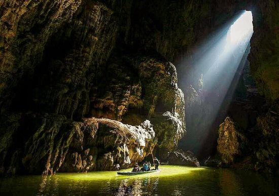 记得陶渊明在《桃花源记》中这样写道:“林尽水源,便得一山。山有小口,仿佛若有光;便舍船从口入。”顺着潺潺的流水,驾着小船溯流而上,就会看到一 座腹部藏有巨大石洞的石山。直至进入洞中,光线由明转暗,像是等待一场剧的开幕。安静的流水声缓缓划过耳边,船只轻微的摇摆声让人难免紧张,一段路程后, 光线渐渐放亮,穿过山洞,忽然之间,一个豁然开朗的村庄尽显眼前。这是云南坝美,这是人间最真实的世外桃源。