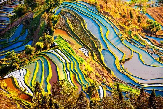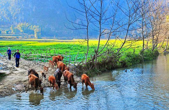 “坝美”是壮语的音译,意为“森林中的洞口”。穿过洞口来到此处,村里的人们基本上还沿用着300多年前的耕作方式,一层层的梯田安静地躺在阳光下, 村民用木犁耕田,一步一个脚印地踩在泥地里,辛苦的劳作是为了填饱肚子。在这里生活的人们,自种棉花自家纺布,碾米磨面都用石,因为没电,就用沼气来点 灯,用木柴烧火做饭,所以远远地你就能看到一缕缕饮烟袅袅升腾,它们抵达的地方是蔚蓝干净的天空。