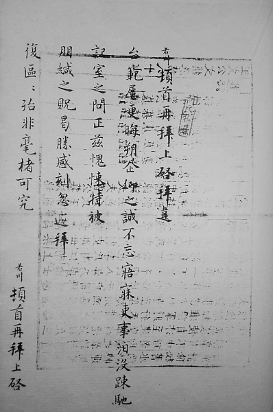 《局事帖》认识误区之二是关于该件写本体裁的性质。《局事帖》是曾巩的一封书信,它之所以被称为“帖”是书画界多取书写在纸或丝织品上篇幅较小的书法作品的前两字而称之为“某某帖”所致。实际上,“帖”除了《说文》所谓“帛书署也”即书签并被引申为指称书法作品之“帖”外,还有指称一种“文券”之意,《唐韵》卷五入声三十“帖”释该字义称:“券帖,又床前帷。”业师唐长孺先生据此指出:“券是文券,与帖连称,似乎作为一种文书形式,这是唐人的解释。帖作为一种文书形式在南北朝时罕见,而在唐代普遍行用。”(见《木兰诗补证》,《江汉论坛》1986年9期)显而易见,《局事帖》属于私人书信,它在唐宋时期有一个专称,即“启”,故曾巩在《局事帖》之末特书“谨启”二字,书启之“启”才是曾巩此件写本亦即《局事帖》写本体裁的准确属性。当然,“帖”与“启”的体裁区别对于书法学界的学者可以说是不言自明,但是对于非书法学界的朋友而言,强调一下《局事帖》实为书启之“启”而非法帖之“帖”似乎并非多余。