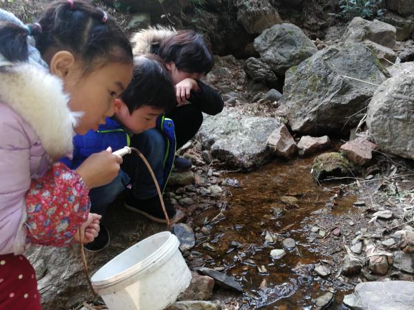 望着平静的水面,想起父亲说的话,冬天里哪有螃蟹抓,都怕冷躲起来了。带孩子体验抓螃蟹的乐趣,最后抓了两只蝌蚪回去,想抓螃蟹,还是等夏天回家的时候再来体验吧