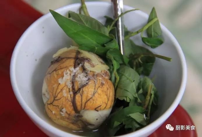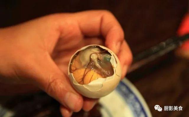 屈头蛋类似于活珠子,就是鸡、鸭蛋在胚胎刚刚开始孵化成型的时候,中止孵化的蛋,是广西东兴等中越边境地区常见的风味小吃。一般常见的吃法就是带壳煮熟,然后按照个人口味搭配一些佐料,比如香菜、紫苏、姜丝、葱花、生菜、酸柠檬等,又香又甜又辣,脆滑的蛋白,浇上特有的酱料,酸甜辣完美融合在嘴里;也有人喜欢炸着吃的,咔吧咔吧口感香脆,称得上是美食。