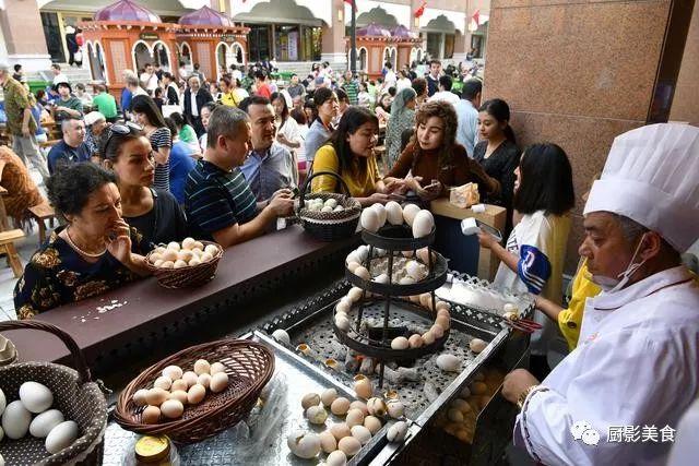 智慧的和田人在简单的食材上不断予以创新,又研制出拳头产品-三蛋一星。三蛋就是鹅蛋、鸡蛋、鸽子蛋,一星是藏红花。。制作时选择大个的鹅蛋,将鹅蛋顶部开洞,倒出蛋清,加入鸡蛋、鸽子蛋的蛋黄,再舀上一勺蜂蜜、藏红花,搅匀后放到炭灰中稍加烤制,熟后便腥气大减、口感劲道,极受欢迎。