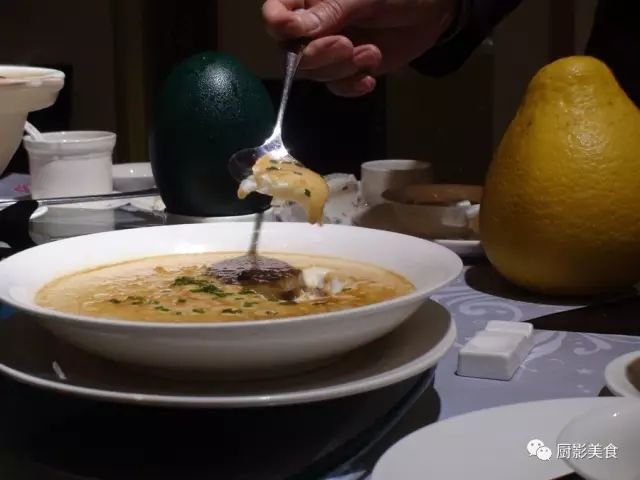 这就是清蒸鸸鹋蛋,一个鸸鹋蛋就能出品一份菜了。