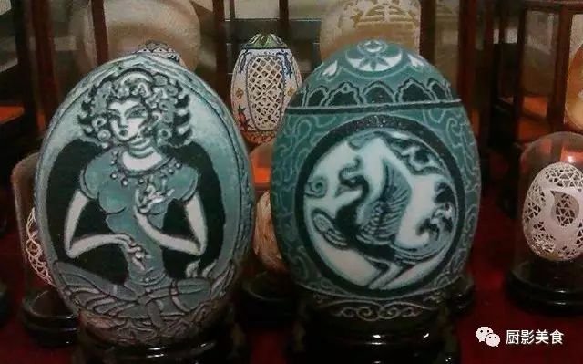 鸸鹋所产之蛋,鸸鹋蛋是世界上颜色最美丽的鸟蛋之一,鸟类中独一无二。鸸鹋蛋的颜色非常独特,呈天然的墨绿色,鸸鹋蛋壳有三层颜色,分别为墨绿色、天蓝色和白色,鸸鹋蛋壳不用雕刻即是天然精美的高档工艺品,而雕刻而成的鸸鹋蛋壳工艺品具有极高的收藏价值。在18世纪,欧洲贵族就以拥有一枚鸸鹋蛋为荣,并把它和黄金珠宝镶嵌在一起,制成珍贵的艺术品。