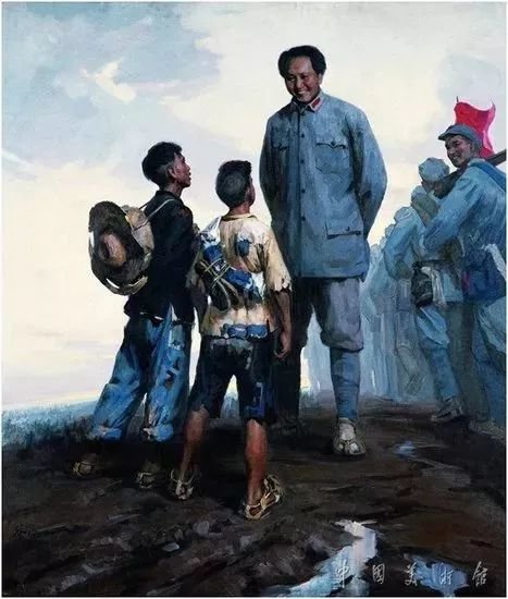 他们看得出那位长者的“首长”身份,然而却不知道他就是毛泽东的戏剧性情节,赋予了这一严肃题材以令人感到轻松和亲切的气氛,此画之妙亦在于此。