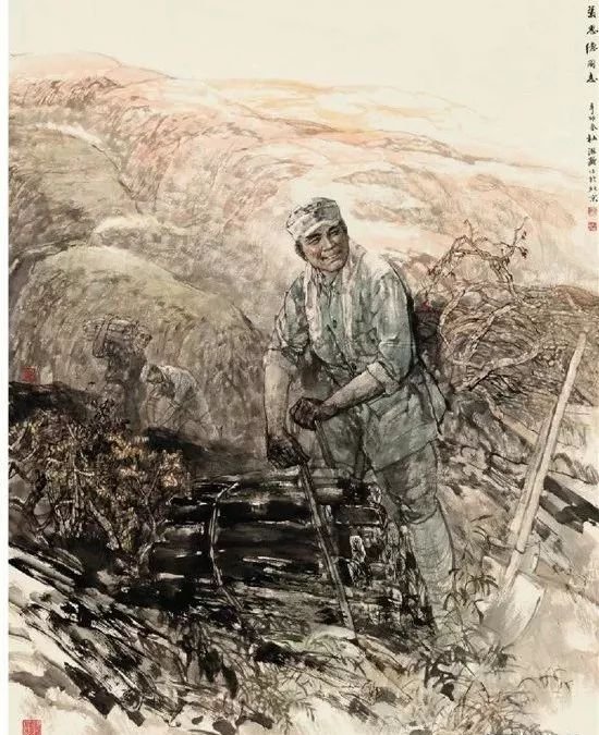 张思德这个题材杜滋龄从上世纪60年代就开始画,为了创作好这个题材,曾数次到陕北,在张思德当年工作过的地方体验生活,访问过张思德的战友,搜集素材。