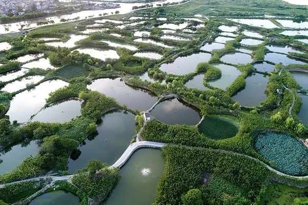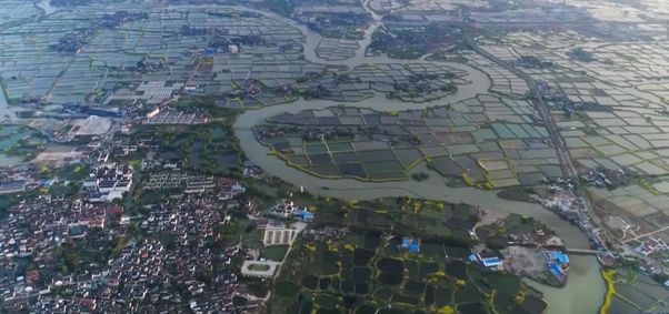 与种植水稻相比,养殖水产品可以卖出更高的价格,致富更快。拉近一点,你会看到这里有上百万个鱼塘。除了鱼塘,你还可以看到周围种了很多树。