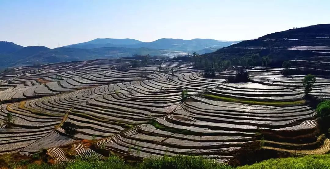 再靠近一点,你可以看到所有的山丘都被改造成了梯田。