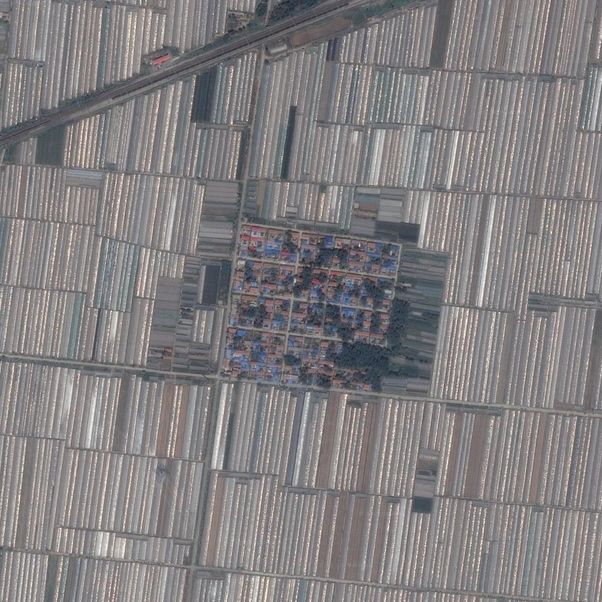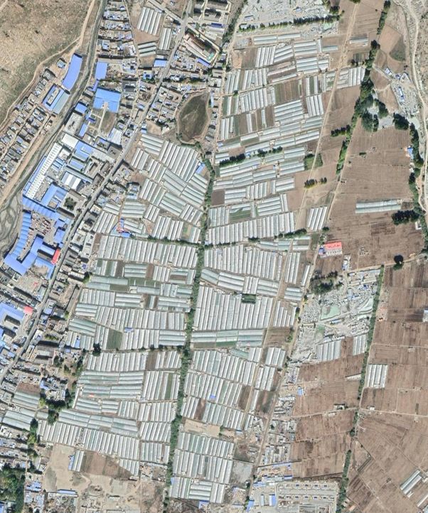 下面还是大棚,但是是西藏的大棚。把谷歌地球移到西藏任何城镇,都能看到大棚。