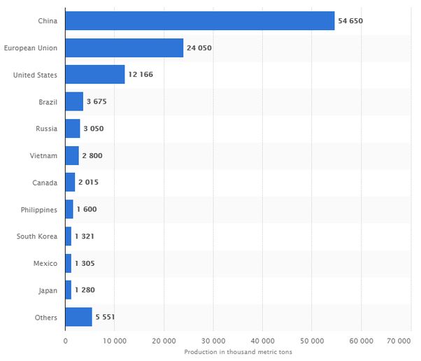 那中国的海鲜消费量是多少呢?