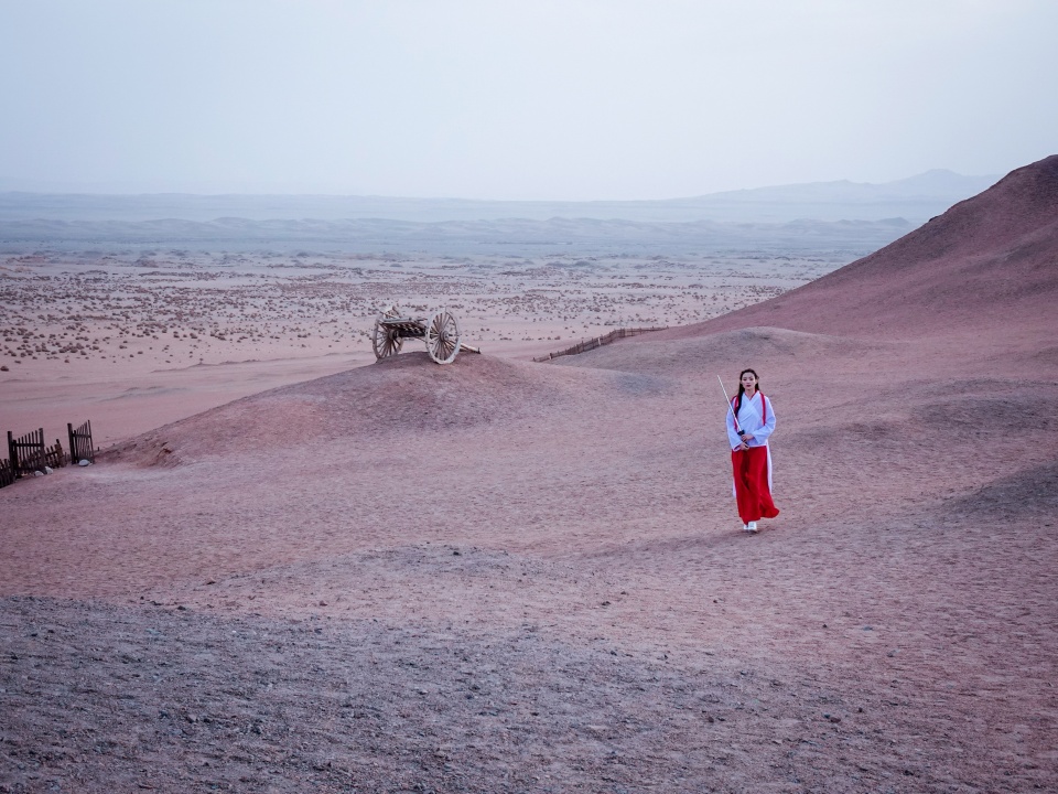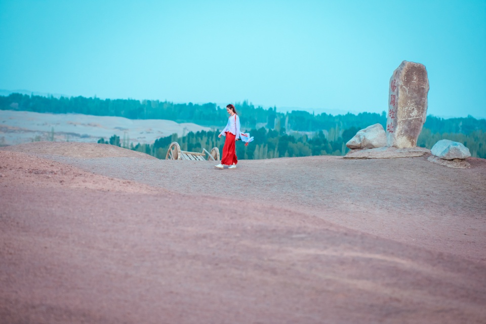 阳关在中国有很高的历史价值和艺术价值,以至于来敦煌的文人都会来这里站在土包上向向西遥望,寻找那一声叹息。余秋雨先生说,这里应该还有自然浑合、夺人心魂的胡笳和羌笛。这两样再配今天带的这一壶酒,便是人生的壮美。