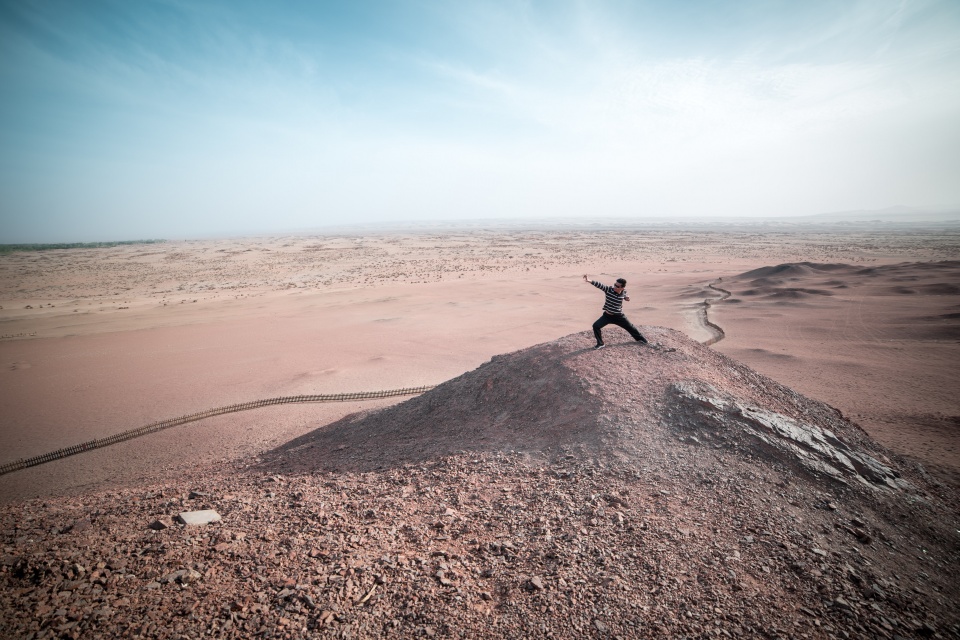 黄昏,风冷呼啸,站在阳关一个土包上等待日落。和大多数文人一样,向西眺望,眼前是一片单调乏味的荒原。如果是晴天,本应望见阿尔金山,可是今天的沙尘让地平线消失,呈现出的迷离,让摄影人心寒。我想这才是阳关真实的那一面。在古代,从这里走出去意味着不再回来。西出阳关何止没有故人,茫茫戈壁,连鸟兽也很少见。