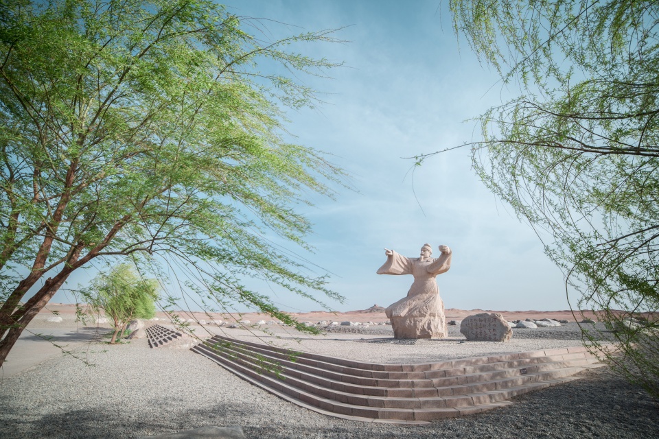 阳关的日落在晚上九点半结束,在这之前不得不赶回景区门口,这时风中传来古琴声,仔细分辨,是《阳关三叠》。这仍然是千古名曲,根据王维的那首诗改编。流传至当代,已列入中国十大古琴曲,成了向世界文化炫耀的国粹。