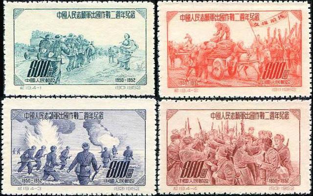 这四枚邮票,第一枚《志愿军出国作战》参考了画家邵宇的作品,第二枚《支援前线》取材于王式廓的美术作品。