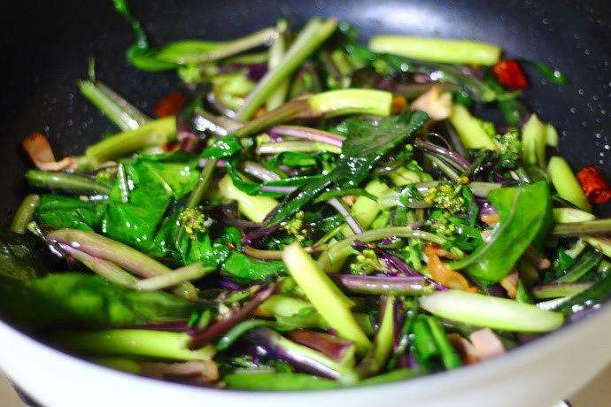 正宗血统的菜薹,叫洪山菜薹。地质学家发现,在洪山宝通禅寺一带,北有洪山,阻隔寒风,南有南湖,气候温暖潮湿,十分适合红菜薹生长。此外,洪山一带的土壤为灰潮土,其母质是一种长江碱性冲积沉积物,含有丰富的微量元素。千百年来,因长江洪水漫溢,夹带泥沙在洪山宝通禅寺一带各处垄地沉积下来,经过历代祖先精心耕作,加之品种优良的菜薹,天时地利,打造了洪山菜薹血统之正。菜薹上市之时,便占据大小餐厅C位,食客们喜欢点的,便是一盘菜薹炒腊肉。