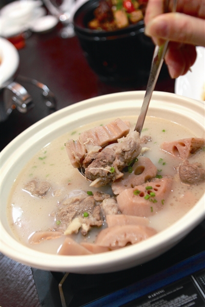 武汉多湖,盛产莲藕,品种和质量都属良品。武汉人炖排骨藕汤不叫炖,叫“煨汤”,用来煨汤的锅叫“铫子”,经过铫子煨出来的排骨藕汤味道最为正宗,是武汉人过节或待客之时餐桌上当仁不让的“主角”。