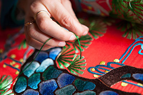 与苏绣、湘绣、蜀绣并称为长江流域四大名绣。以“平金夹绣”为主要表现形式,大胆多变、大雅若俗的风格沿承了楚人性格豪迈、热情浪漫的基因特性。