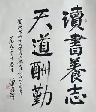 他的书法端庄稳重,自成特色,既有颜体的宽博宏伟、沉雄朴茂,又有柳体的瘦硬坚挺、骨力洞达,足见其功底深厚。有行家评其书法称“浑然大气,骨力尽现” 。