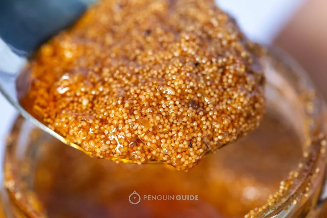 鱼籽酱里肉眼可见的芝麻辣椒,少见有这么鲜的辣酱。抹馒头、抹法棍都是碳水杀手,打个蛋炒碗白饭,鲜到平地起高楼!