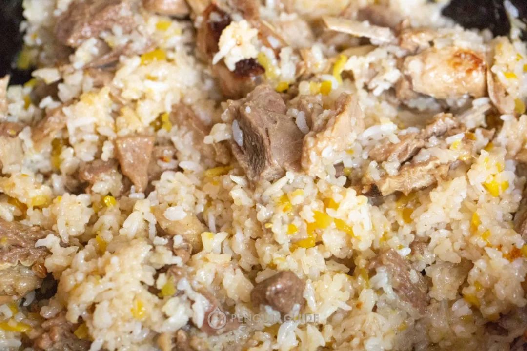 大米生长期长达半年,吸水性与甜度都很出色,每一粒米饭都喝饱了羊油,莹润晶亮,口感糯极了。