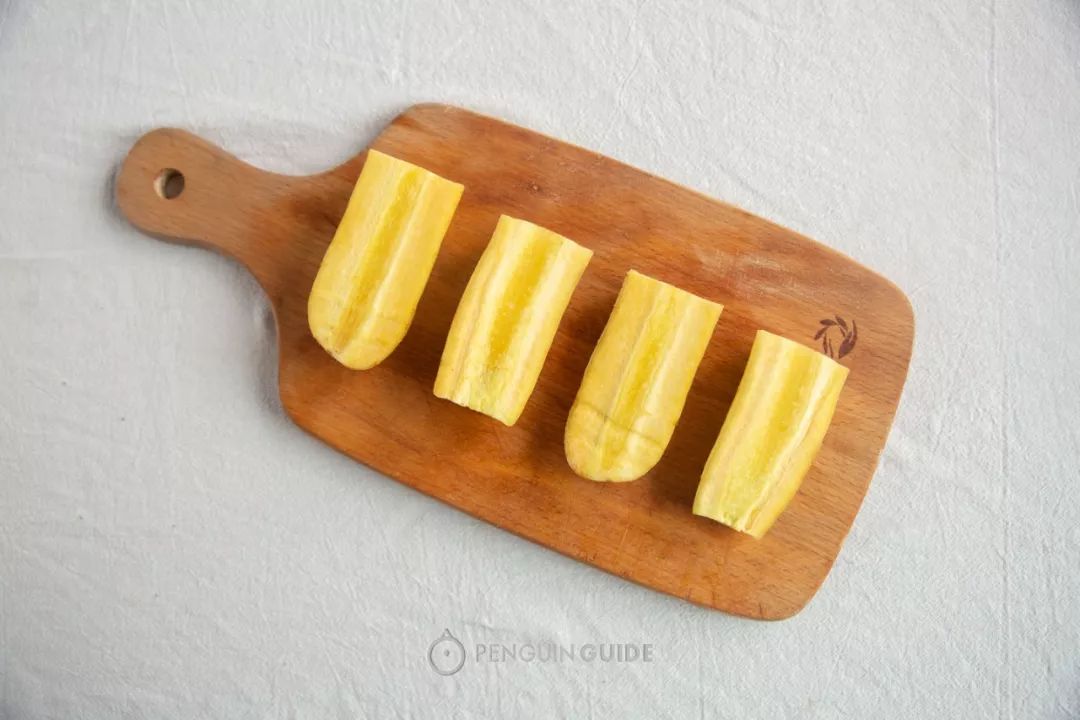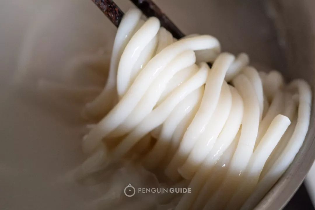 要足足泡上12个小时,再用开水烫上四十分钟,才会变成这样白白胖胖滑滑溜溜的糯米条:
